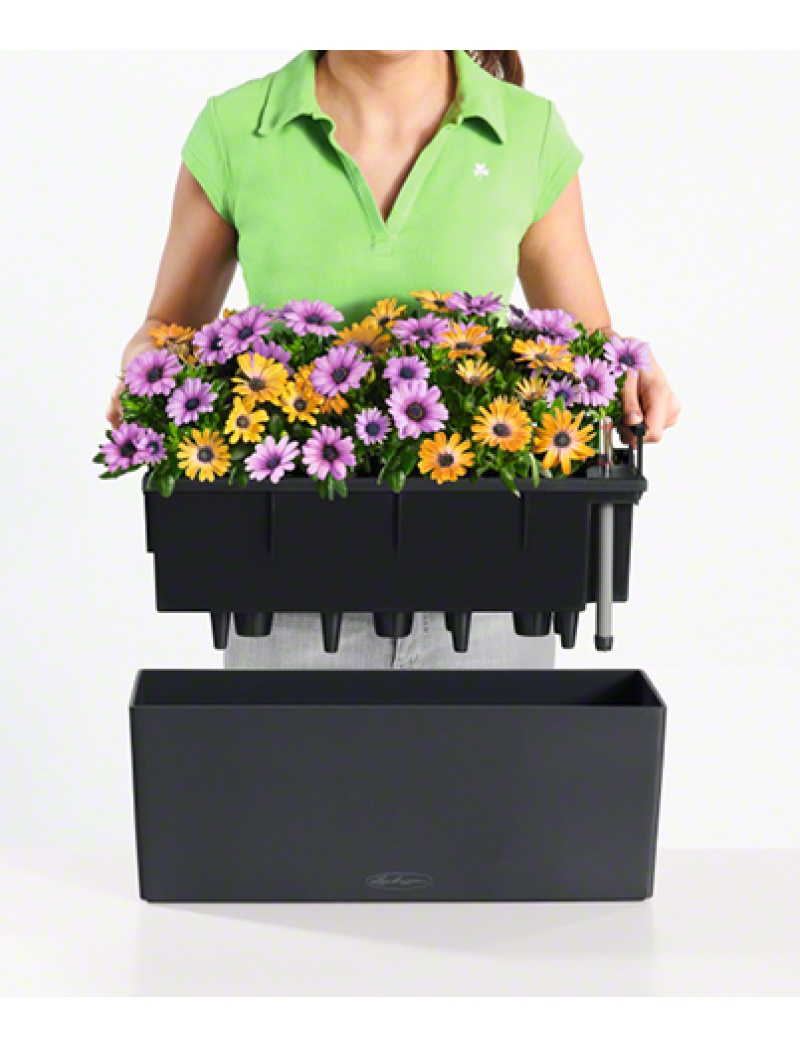 Le pot LECHUZA BALCONERA se décline dans un élégant Gris Ardoise finition mate. Avec des largeurs de plantation de 50 et 80 cm, il a quelque chose en plus par rapport à tous ses semblables. Le plastique robuste utilisé pour sa conception lui assure résistance et solidité, ce qui le rend insensible aux chocs, au vent et au mauvais temps. Son aspect lisse lui confère un charme très contemporain et sa légèreté lui permet d’être en parfaite harmonie avec tous les meubles de jardin. Oubliez les balconnières aux soucoupes disgracieuses.