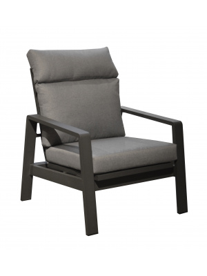 Le fauteuil Le Marseille de Proloisirs est confortable. Elegant et contemporain, il est conçu pour être installé dehors avec son chassis en aluminium epoxy gris et ses coussins déhoussables.
