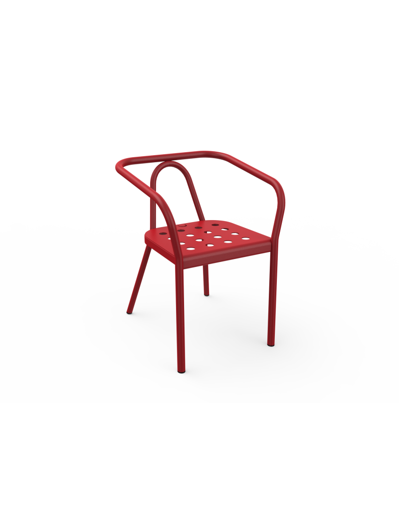 Le fauteuil Helm de Matière Grise est un fauteuil en aluminium conçu avec des tubes cintrés qui lui donnent un côté arrondi. Il est parfaitement adapté à l'extérieur.