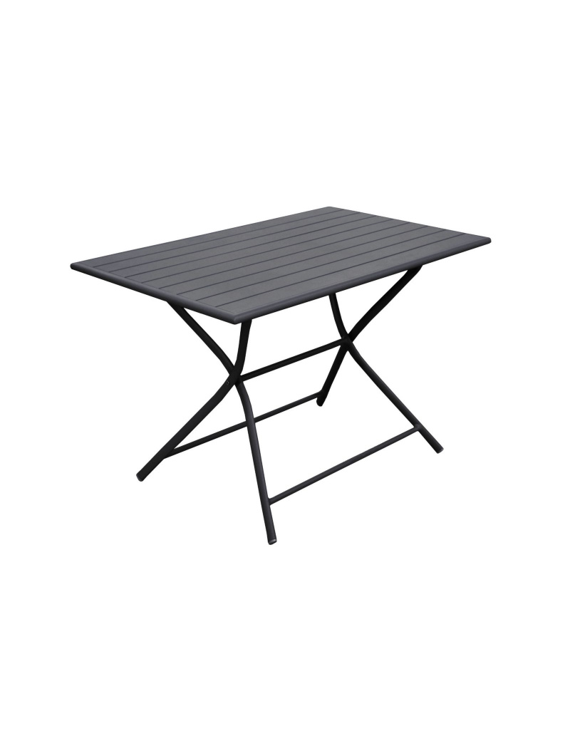 Le guéridon globe conçu par Proloisirs est en aluminium de couleur grise, aspect mat avec plateau à lattes.