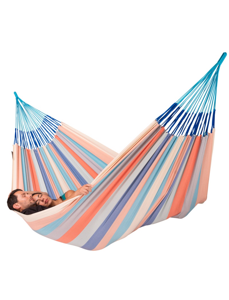 Ca hamac XXL modèle familial présente des dimensions généreuses pour accueillir jusqu'à 3 personnes adultes (jusqu'à 200kg).