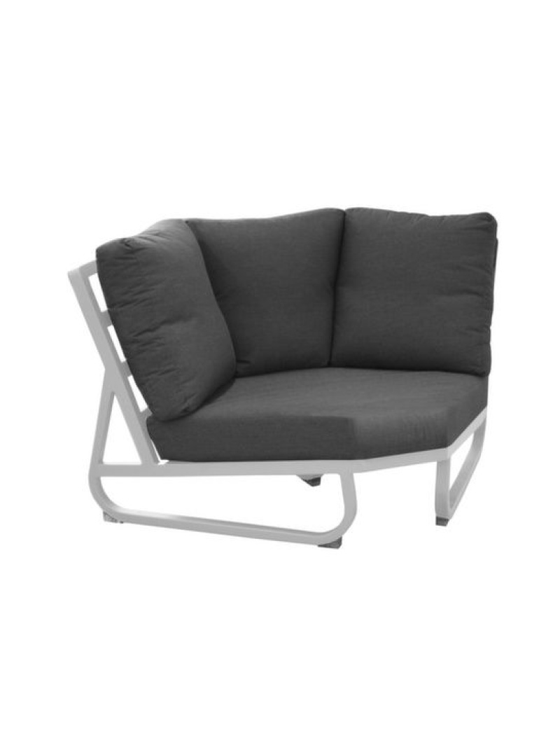 Module d'angle Antonino avec une structure blanche et des coussins gris.