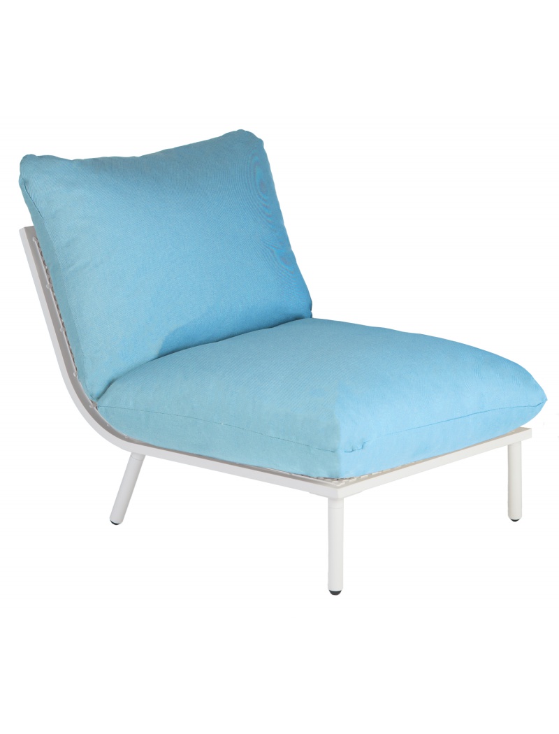 Ce module milieu Beach d'une structure blanche et de coussins couleur turquoise peut être associé à d'autres modules de la gamme Beach de Alexander Rose et vous permettra de former un salon de jardin coloré et tendance selon vos envies.