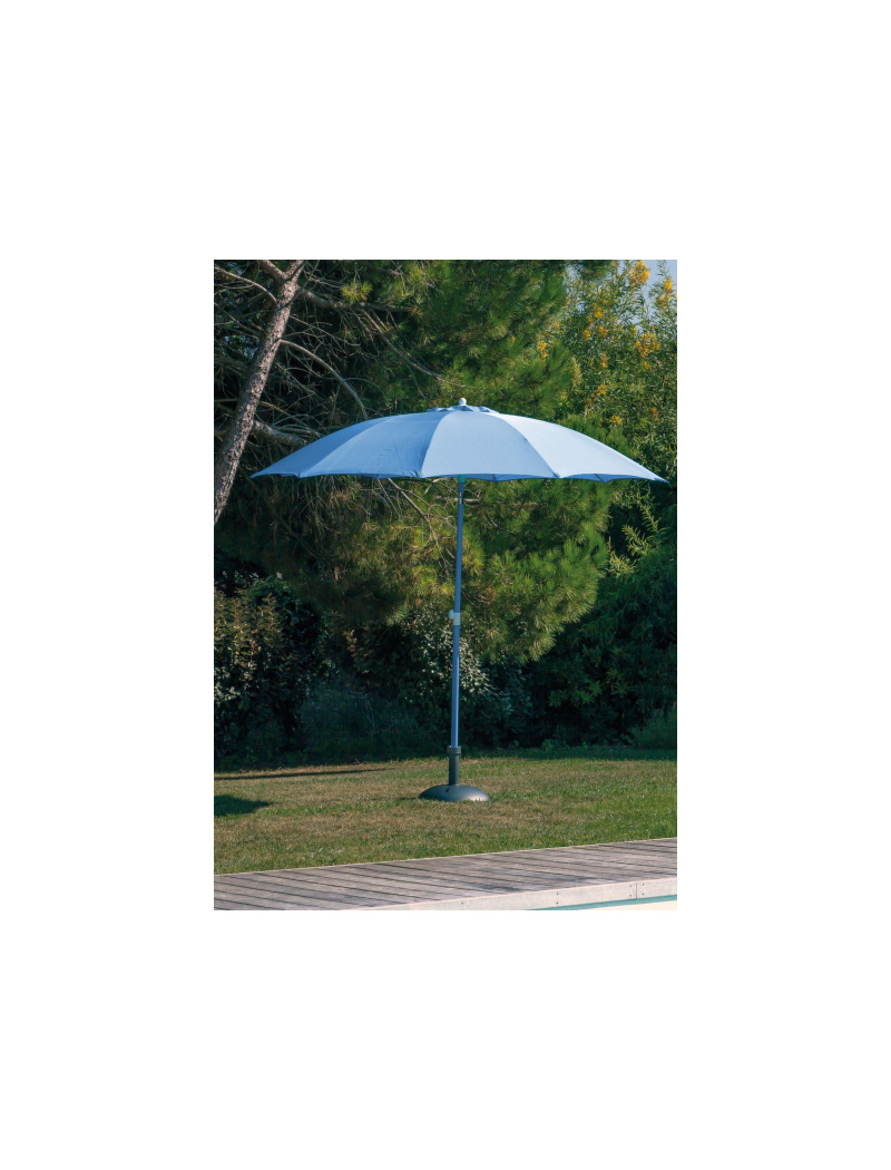 Le parasol rond fibre de verre 270 de couleur Azur a 10 baleines.