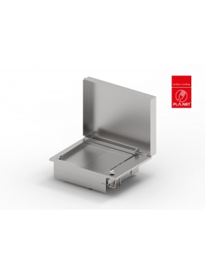 La plancha OASI 55 encastrable de la marque Pla.net dispose d'une structure intégralement en inox et d'une plaque de cuisson en inox lisse rainurée, sur laquelle il est possible de cuisiner pour 6 à 8 personnes.