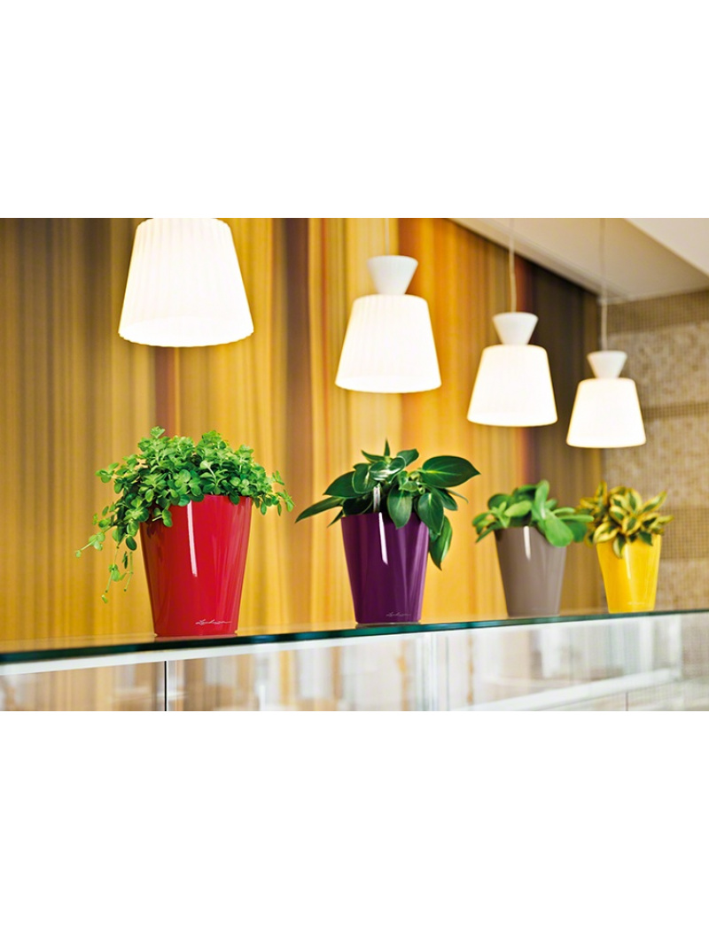 Le pot de table Deltini de Lechuza, disponible dans plusieurs coloris, conserve son système d'arrosage innovant afin de prolonger la vie de vos plantes.