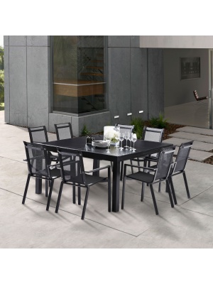 Le salon de jardin Black Star comprend :  - Une table en aluminium et verre noir - 8 fauteuils aluminium et assise grise en... Lire la suite