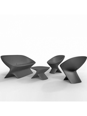 Toute en rondeurs, la gamme Ublo propose différents visages selon l'angle d'où on la contemple, avec ses mélanges de courbes et de volumes, il s'agit d'un salon de jardin original qui retranscrit avec habileté le mouvement dans la matière.