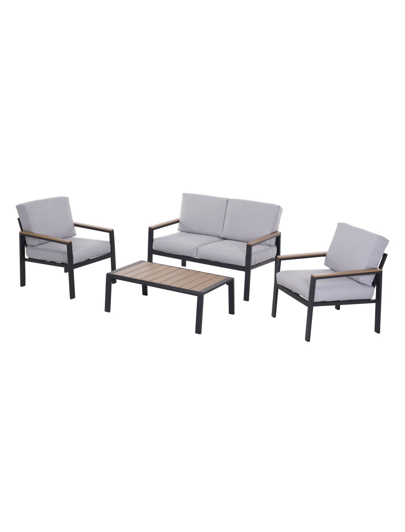 Cet ensemble détente contemporain à la structure en aluminium combinera design et durabilité. L'aluminium ne subit pas la corrosion et peut donc être utilisé dans toutes les zones géographiques, même en bord de mer.