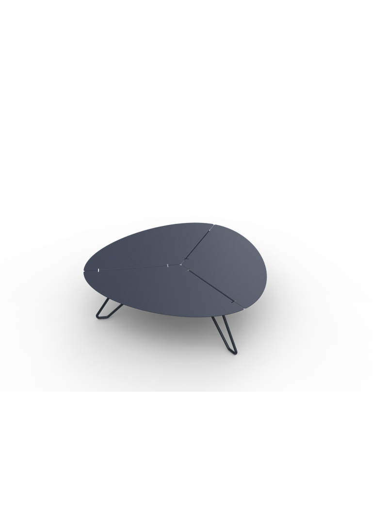 La table basse Loom de Matière Grise présente un look vintage, avec une forme triangulaire mais aux angles arrondis.